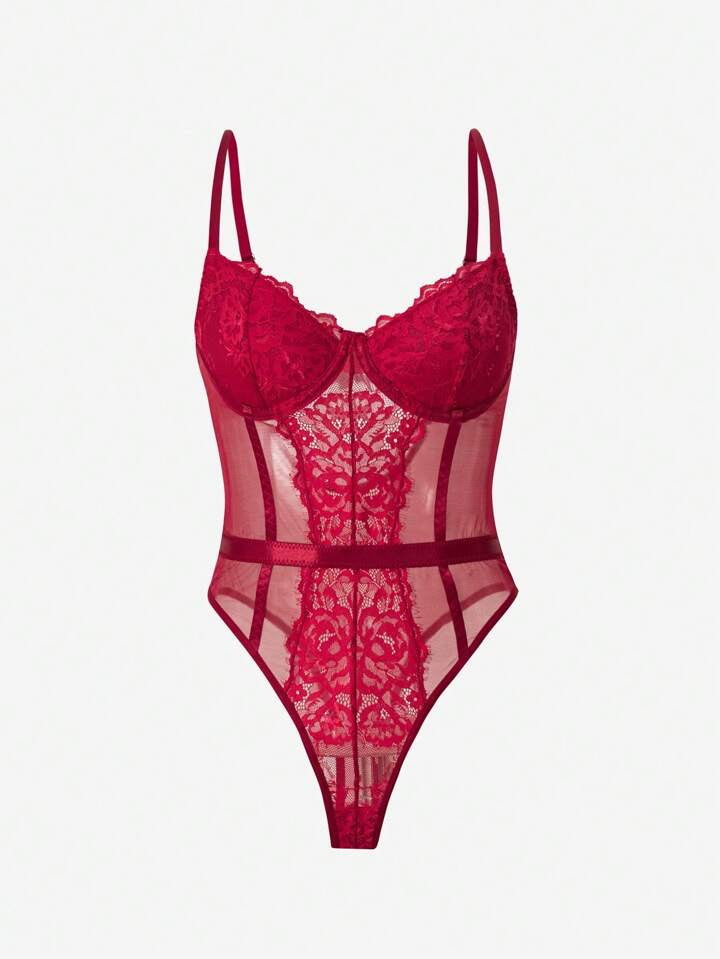 Deep red lace body with central lace panel