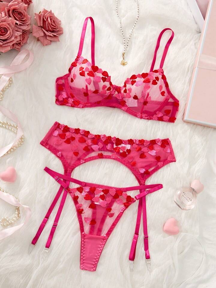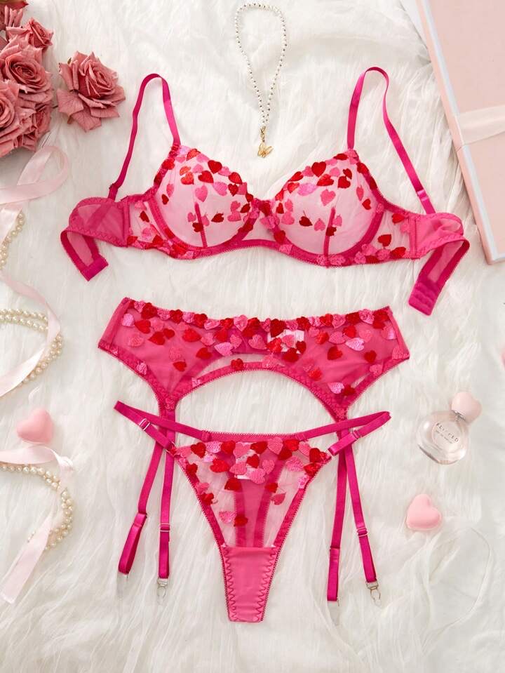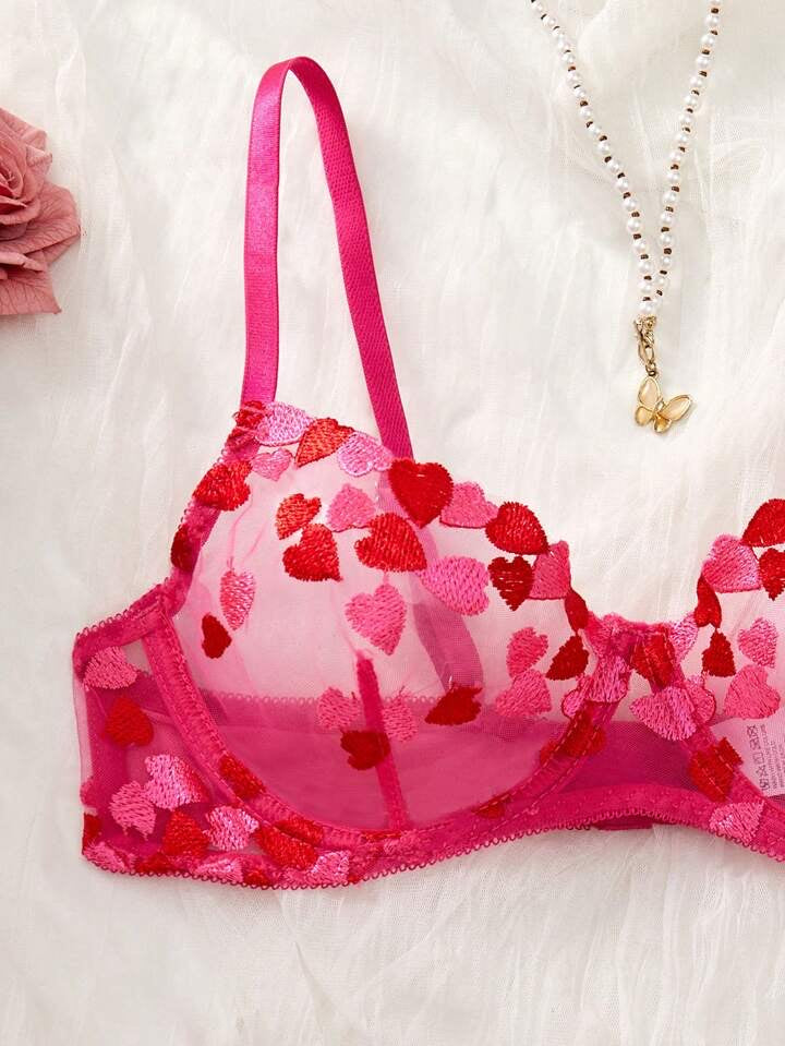 A sultry hot pink bra that clings like a secret, its curves traced with delicate embroidered hearts—each one a whisper of temptation. Bold, flirty, and undeniably seductive, it’s made to be seen, felt, and remembered.
