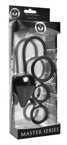 This darkly sexy plug provides power to your cock while filling you up with anal pleasure. The triple ring system provides superior blood retention, for your strongest, biggest, longest lasting erection. The tapered plug has a thin tip for easy insertion, with a teardrop design for increased stimulation. Just slip the largest ring behind your cock and balls, the middle ring over your shaft, and the last ring over your scrotum. Now you have three times the power of a traditional cock ring, as the premium silicone plug stimulates you from the inside. The thin arm keeps the plug from slipping, and provides easy retrieval. Get the most out of your hard on with plenty of pleasure with the Triple Threat Silicone Tri Cock Ring.